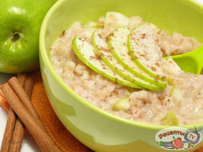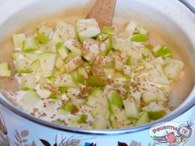 Яблоки порезать кубиками. Добавить в кашу яблоки, корицу и сливки.